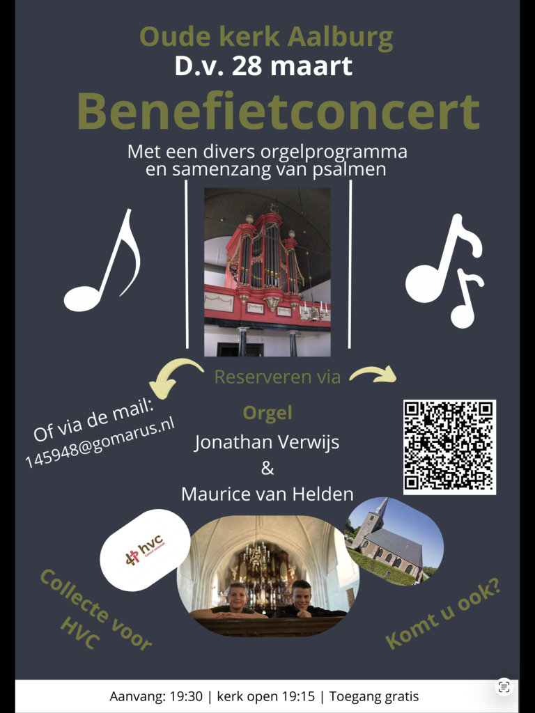 Disclaimer: bij meer dan 200 bezoekers zal het concert plaatsvinden in de Nieuwe Kerk van Aalburg.